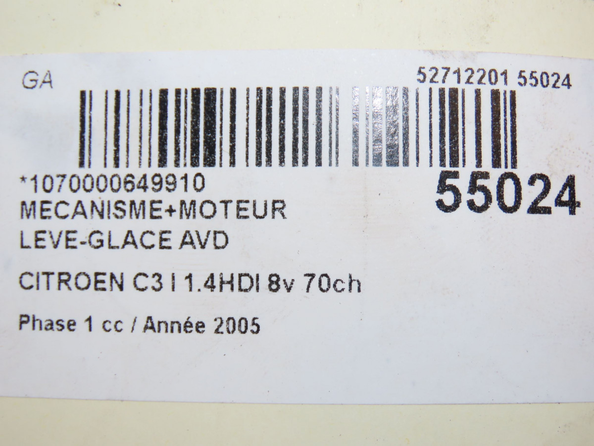 Mecanisme + moteur lève-glace avant droit occasion CITROEN C3 IPhase 1 04-2002->10-2005 1.4HDI 8v 70ch