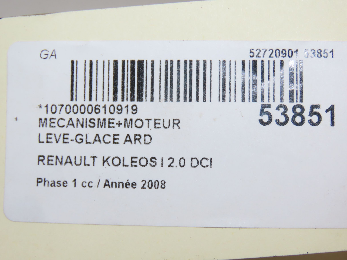 Mecanisme+moteur leve-glace ard occasion RENAULT KOLEOS IPhase 1 06-2008->12-2011 2.0 DCI 150ch
