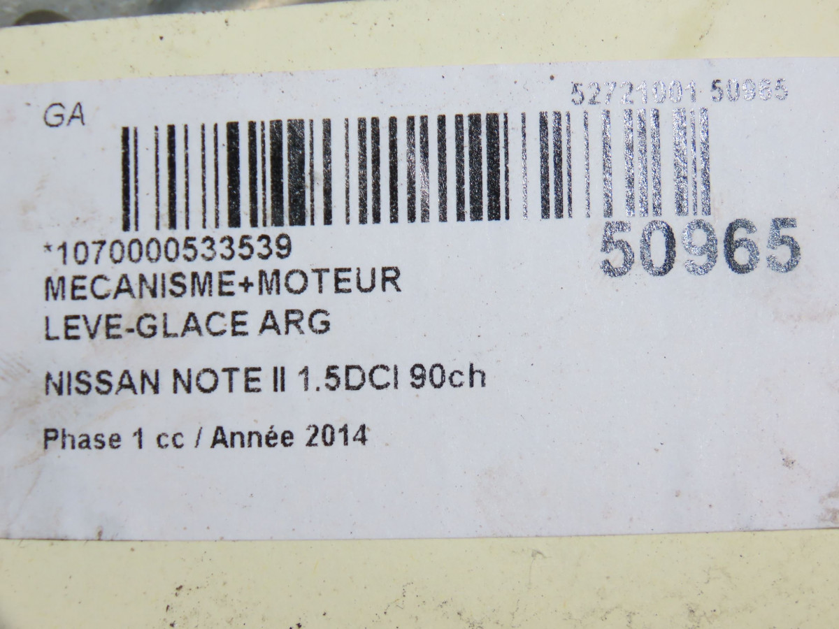 Mecanisme+moteur leve-glace ard occasion NISSAN NOTE II Phase 1 09-2013->... 1.5DCI 90ch 827203VV0A