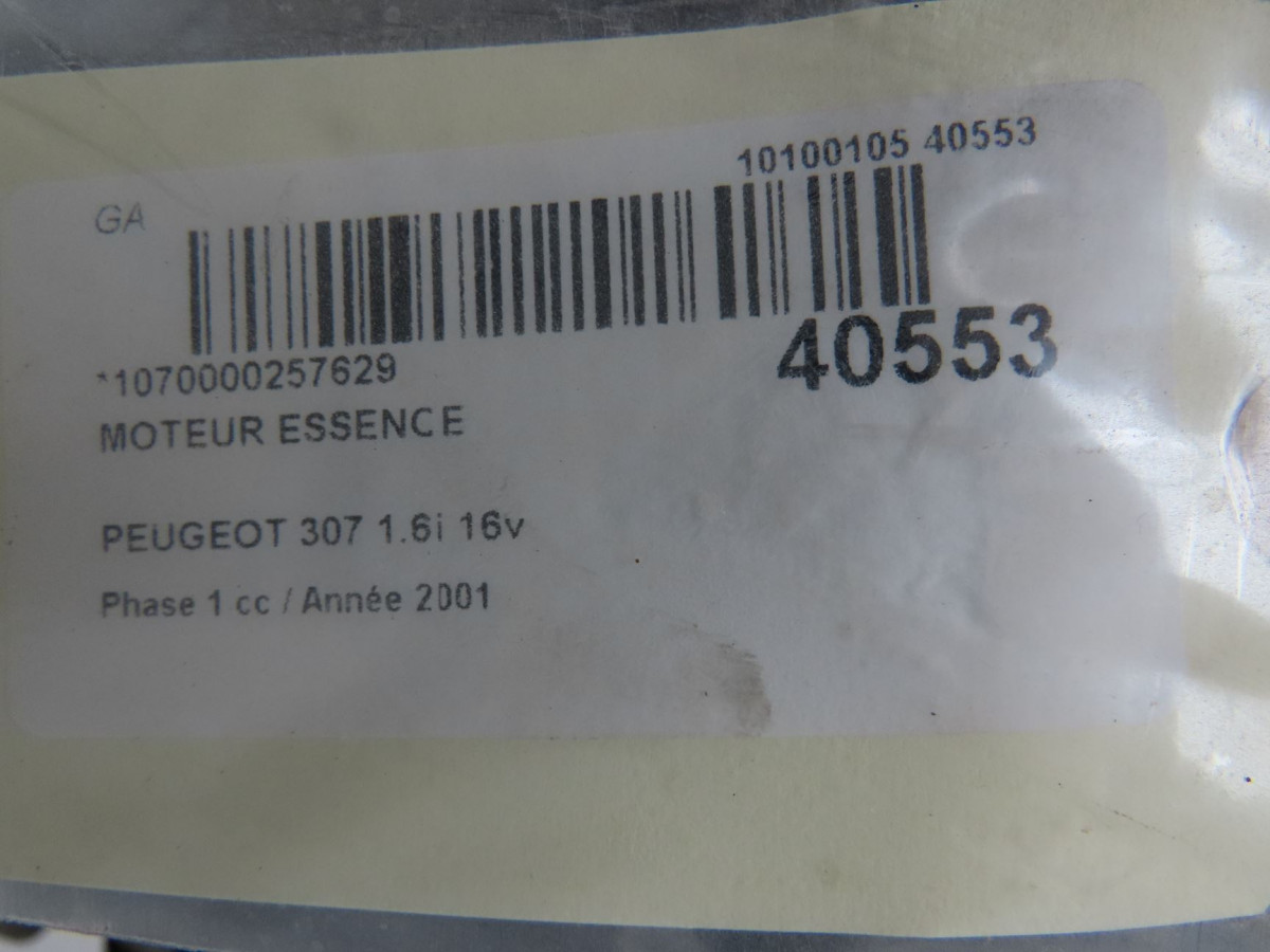 Moteur essence occasion PEUGEOT 307Phase 1 04-2001->06-2005 1.6i 16v