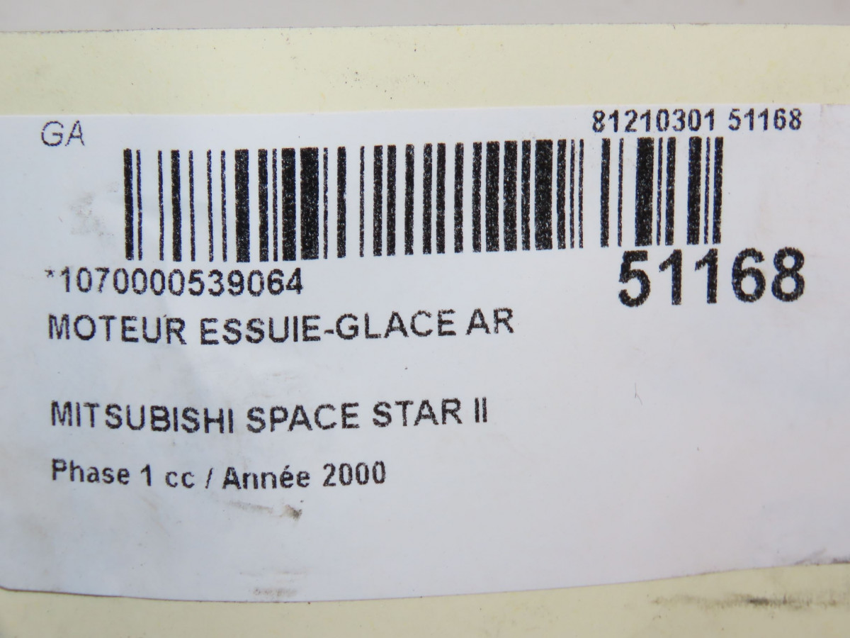 Moteur essuie-glace arrière occasion MITSUBISHI SPACE STAR IIPhase 1 10-1998->03-2006 1.3i 85ch