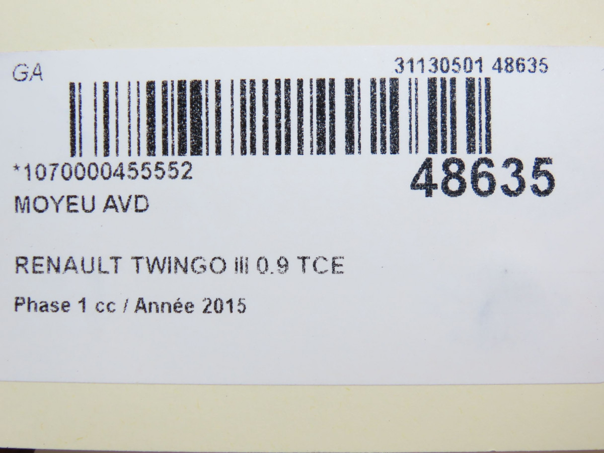 Moyeu avg occasion RENAULT TWINGO III Phase 1 06-2014->... 0.9 TCE 12v 90ch 402023072R