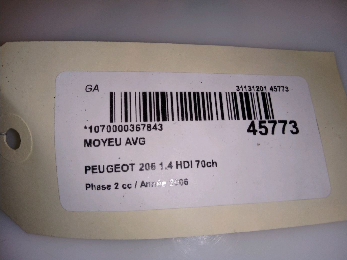 Moyeu avd occasion PEUGEOT 206 Phase 2 02-2003->02-2009 1.4 HDI 70ch 330776