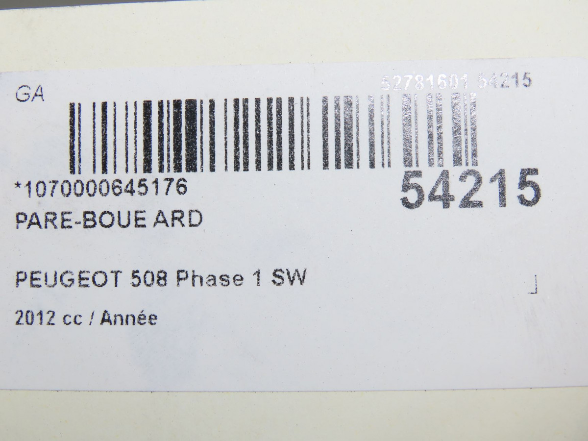Pare-boue arrière gauche occasion PEUGEOT 508 Phase 1 SW 01-2011->12-2014 8533GJ