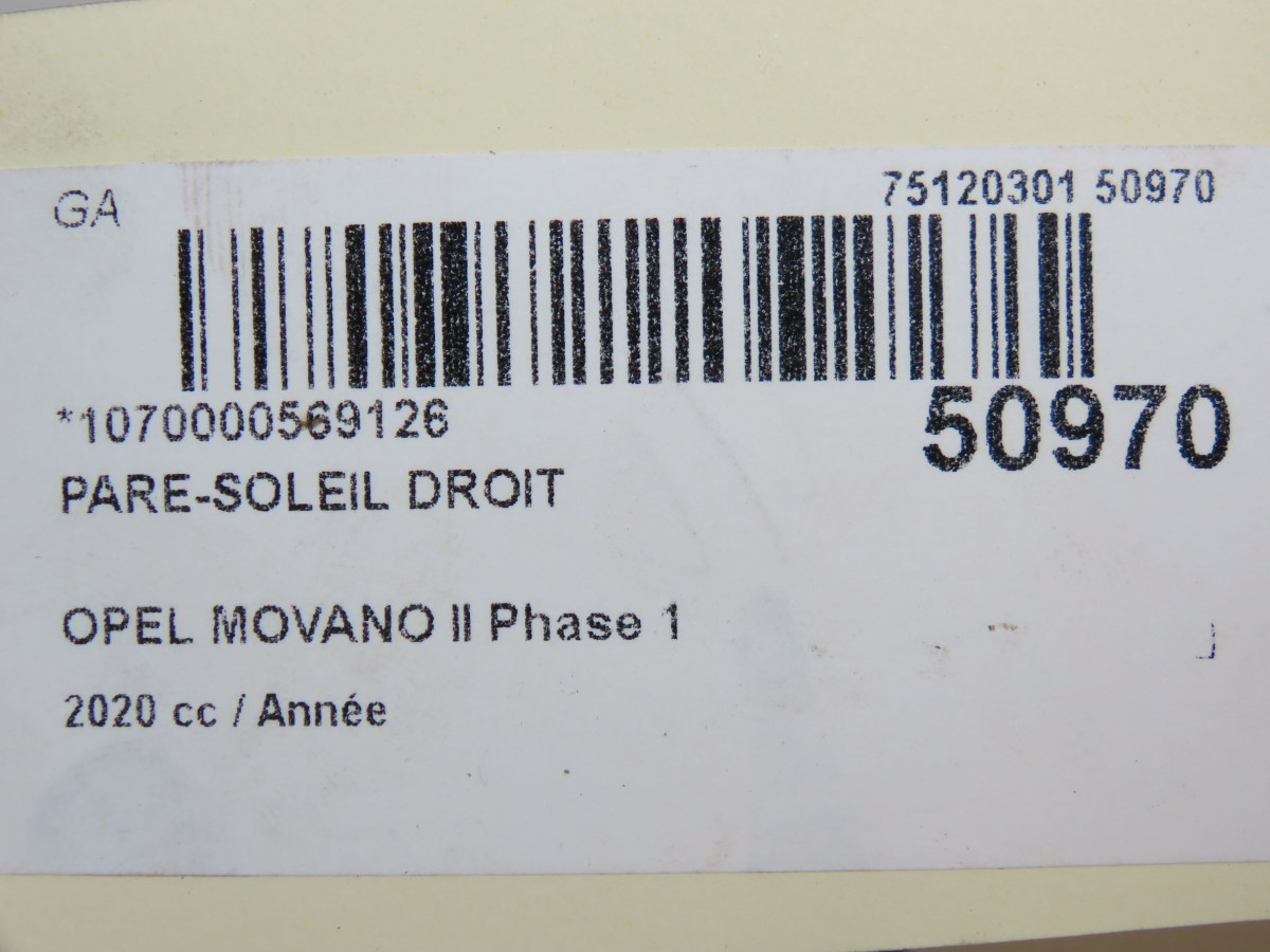 Pare-soleil gauche occasion OPEL MOVANO II Phase 1 04-2010->... 95528047