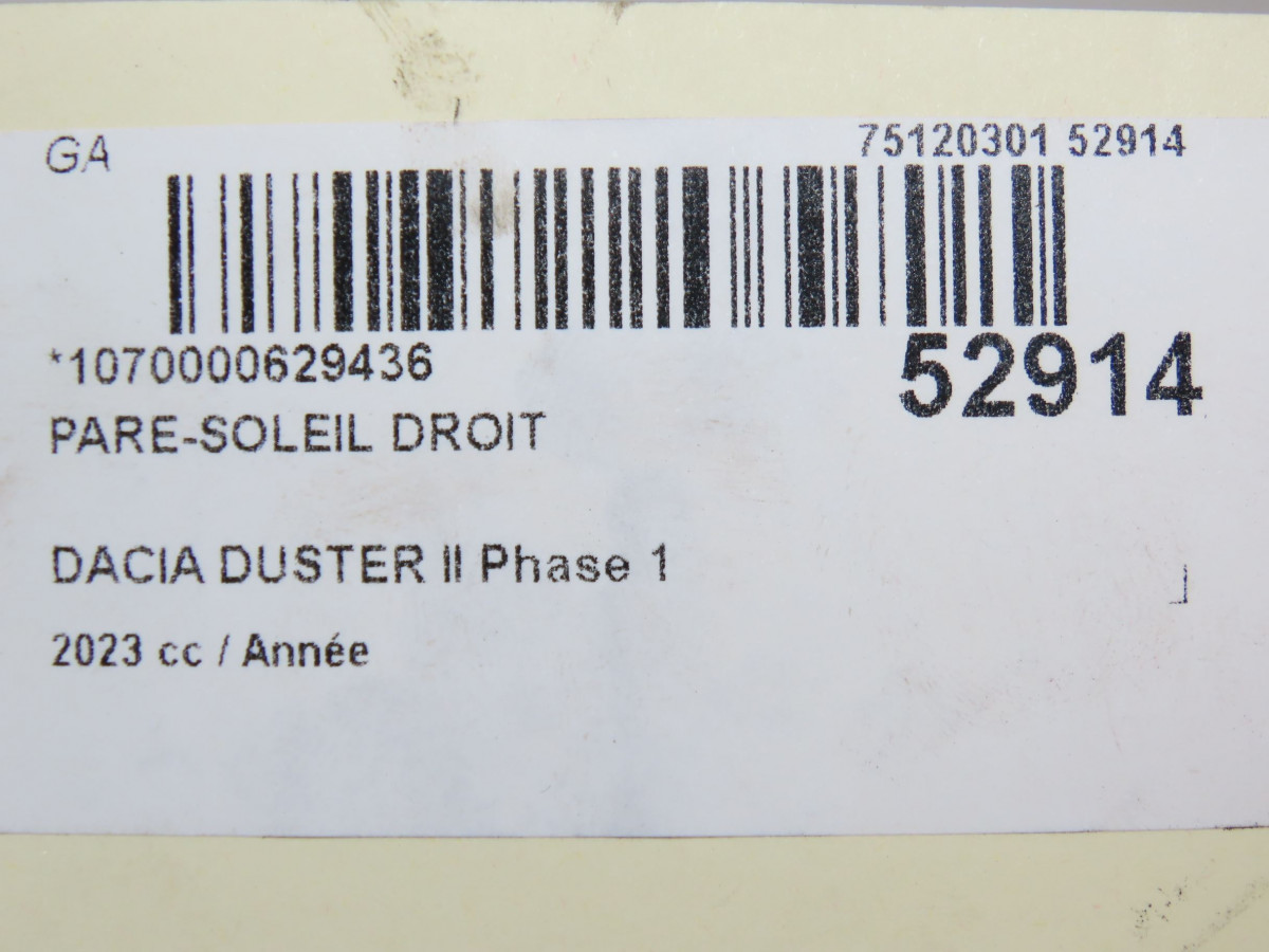 Pare-soleil gauche occasion DACIA DUSTER II Phase 1 10-2017->... 964010723R