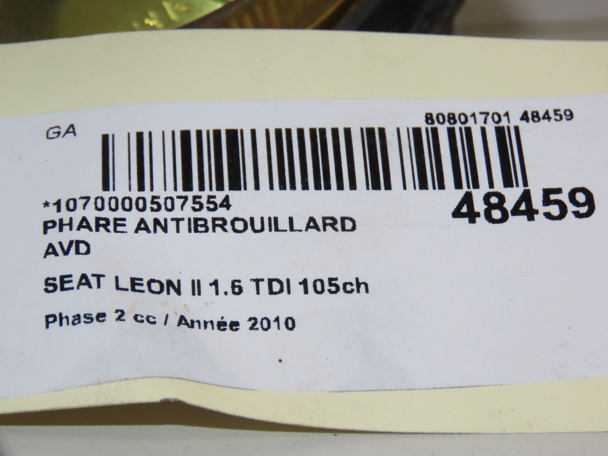 Phare antibrouillard avant droit occasion SEAT LEON IIPhase 2 05-2009->09-2012 1.6 TDI 105ch