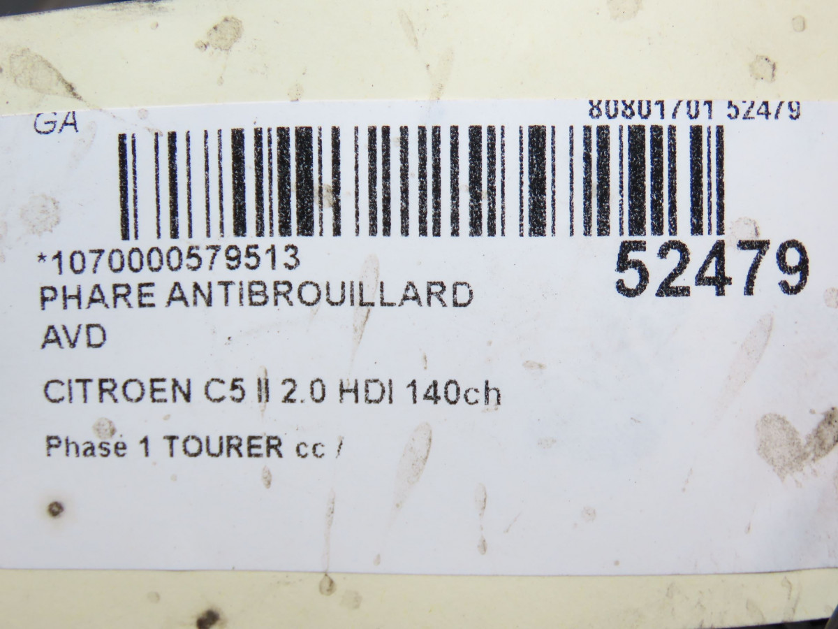 Phare antibrouillard avant gauche occasion CITROEN C5 II Phase 1 04-1995->04-1999 2.0 HDI 140ch