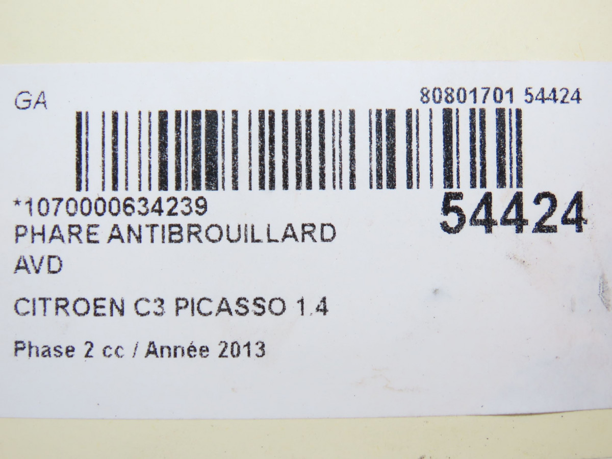Phare droit occasion CITROEN C3 PICASSO Phase 2 09-2012->... 1.4 VTI 95ch 6206N5