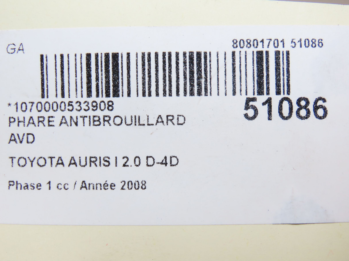 Phare antibrouillard avant droit occasion TOYOTA AURIS IPhase 1 03-2007->03-2010 2.0 D-4D