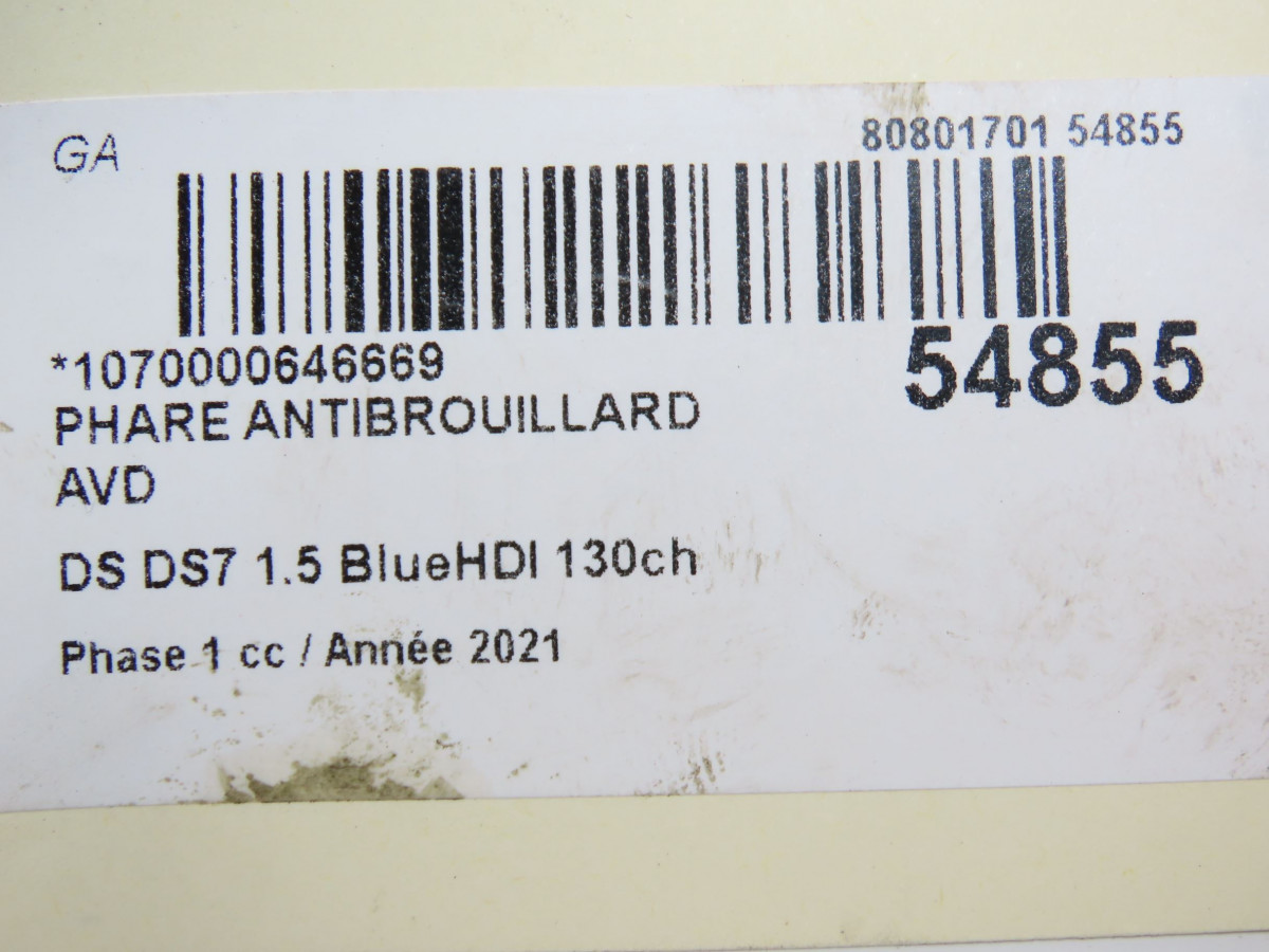 Phare antibrouillard avant droit occasion DS 146Phase 1 04-1995->04-1999 1.5 BlueHDI 130ch