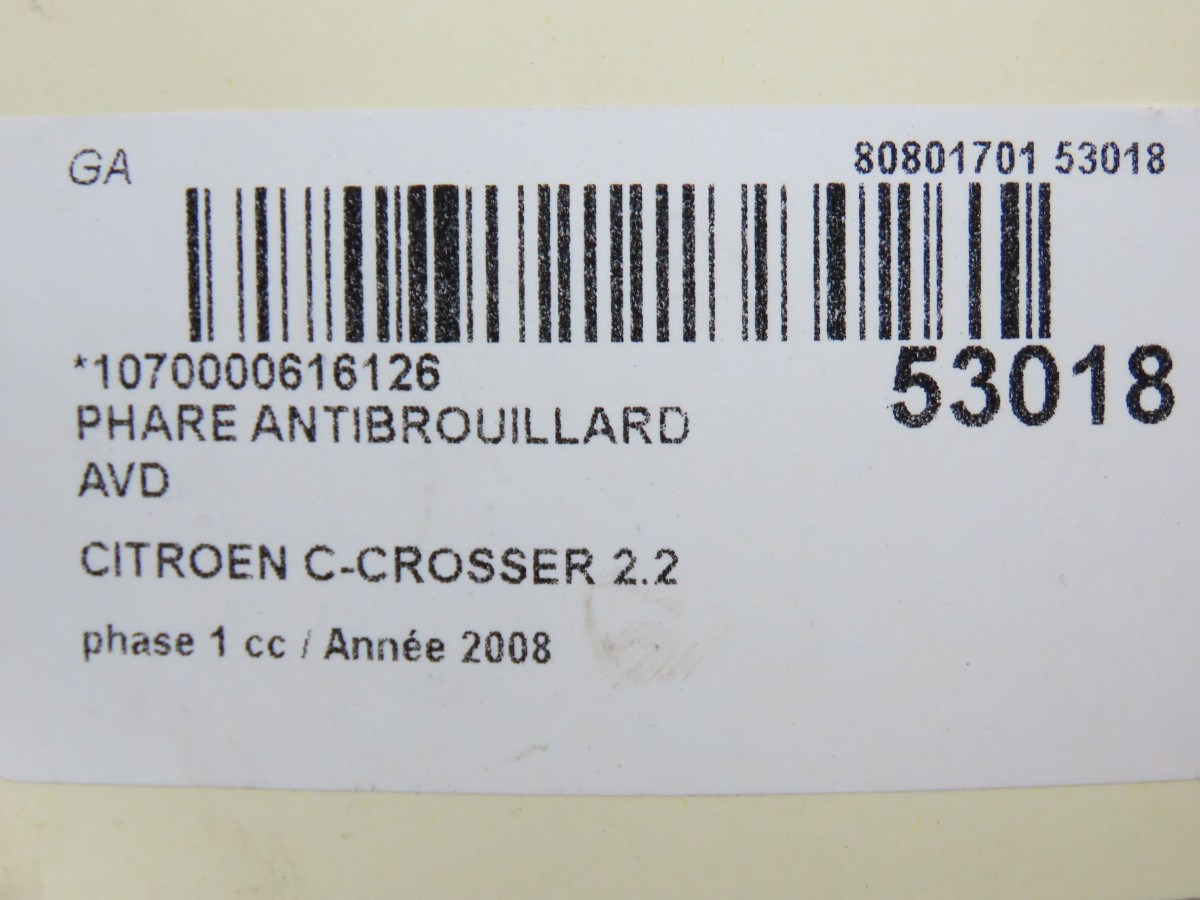 Phare antibrouillard avant droit occasion CITROEN C-CROSSERPhase 1 04-1995->04-1999 2.2 HDI 160ch
