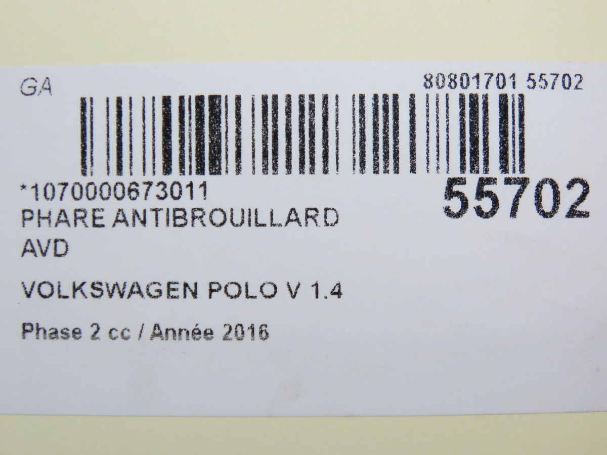 Phare antibrouillard avant droit occasion VOLKSWAGEN POLO VPhase 2 02-2014->... 1.4 TDI 90ch