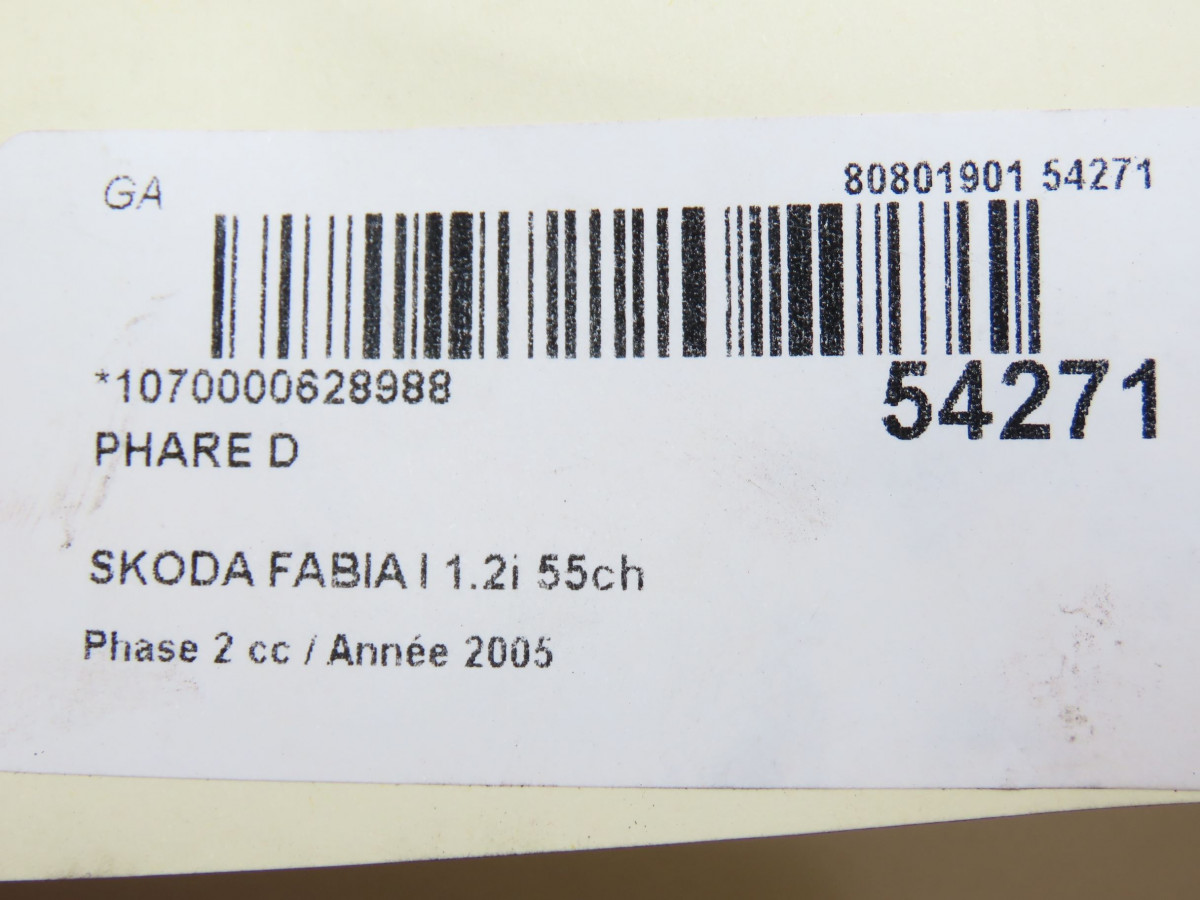 Phare gauche occasion SKODA FABIA I Phase 2 09-2004->05-2007 1.2i 55ch 6Y1941015P