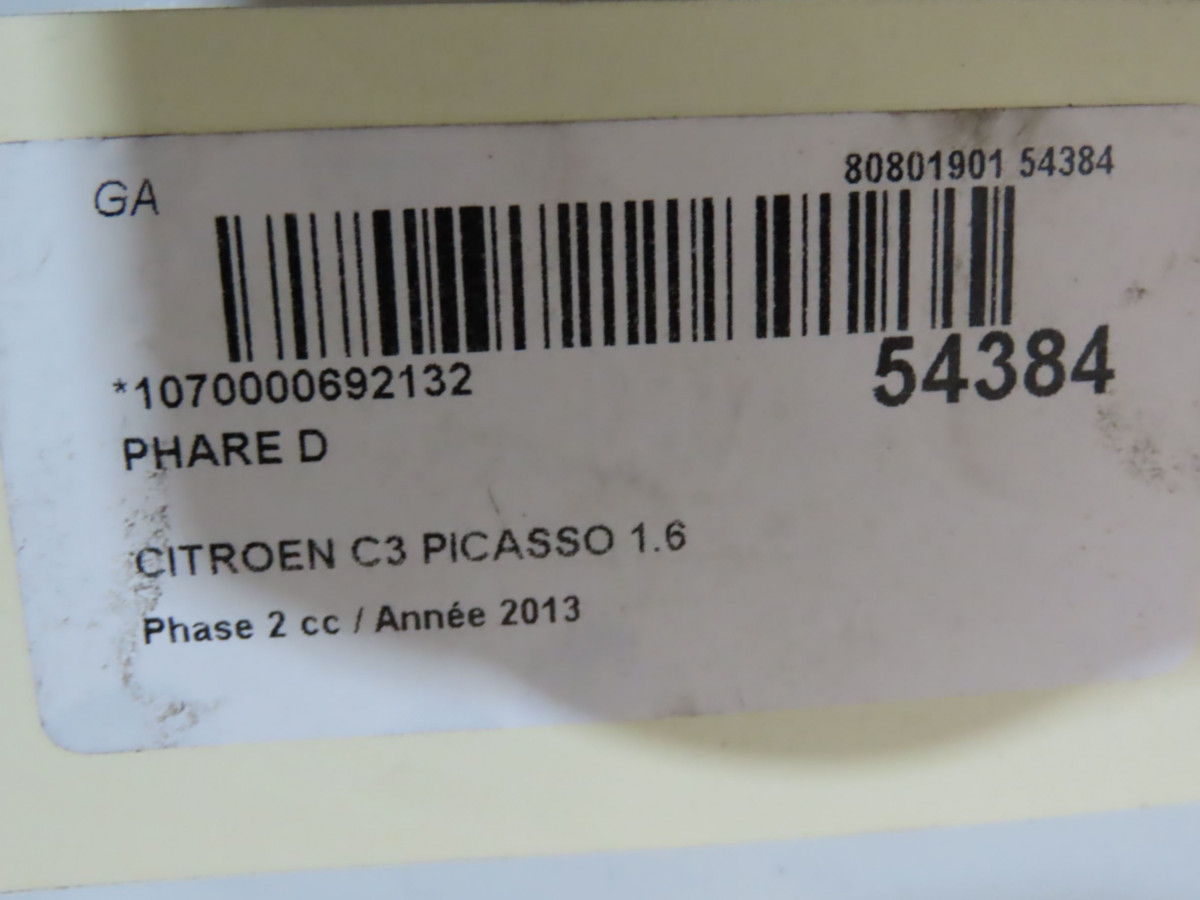 Phare gauche occasion CITROEN C3 PICASSO Phase 2 09-2012->... 1.6 HDI 90ch 6208N5