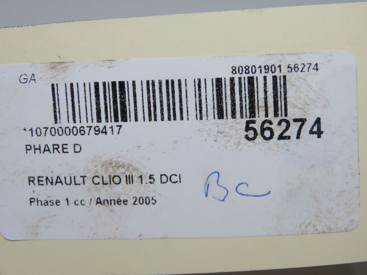 Phare gauche occasion RENAULT CLIO III Phase 1 09-2005->03-2009 1.5 DCI 70ch 260607570R