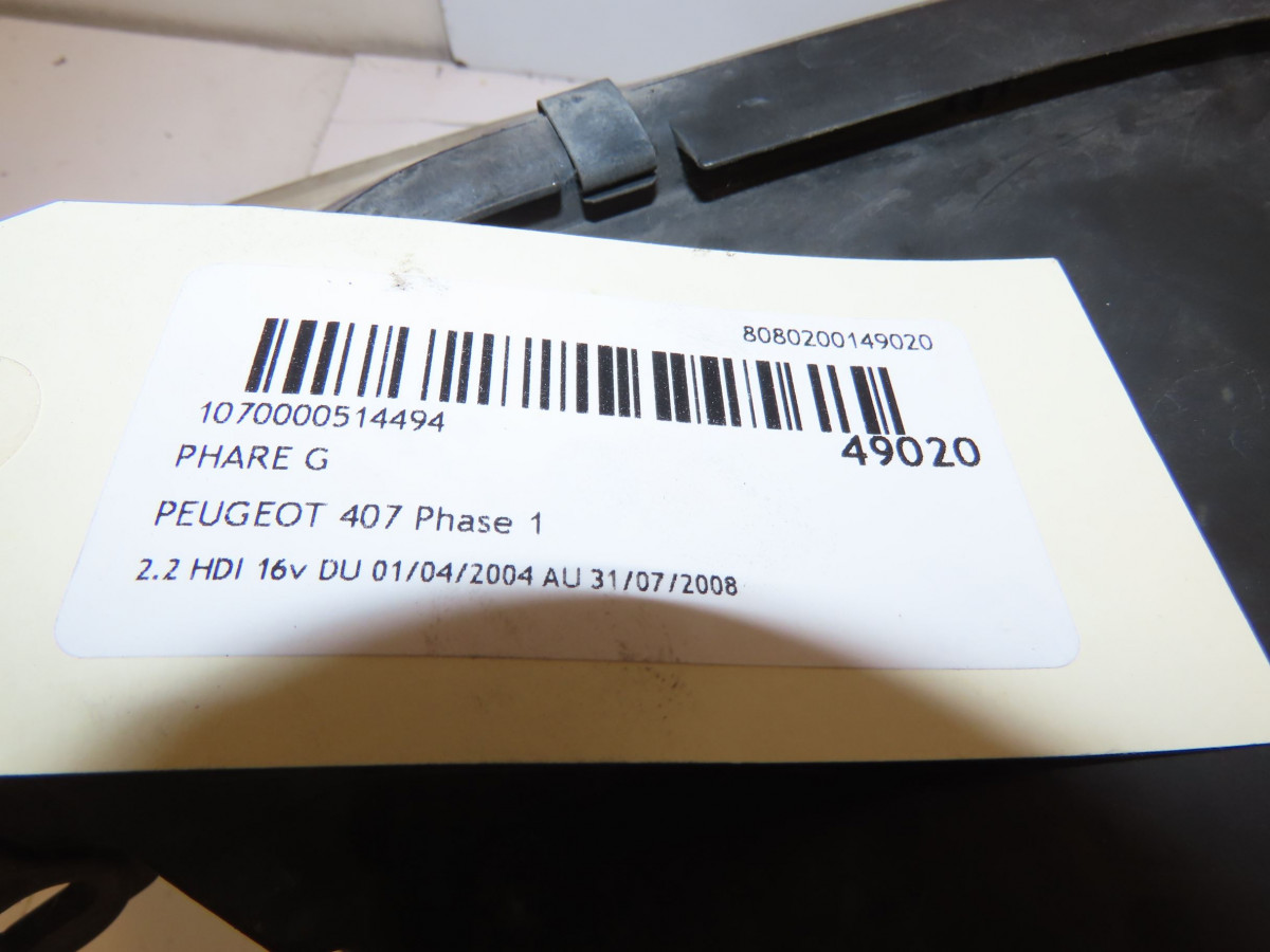 Phare antibrouillard avant droit occasion PEUGEOT 407 Phase 1 04-2004->07-2008 2.2 HDI 16v 620636