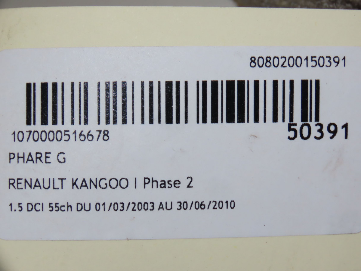 Phare gauche occasion RENAULT KANGOO IPhase 2 03-2003->06-2010 1.5 DCI 55ch