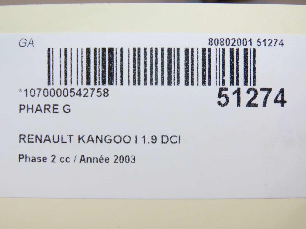 Phare droit occasion RENAULT KANGOO I Phase 2 03-2003->06-2010 1.9 DCI 8v 85ch 260107835R