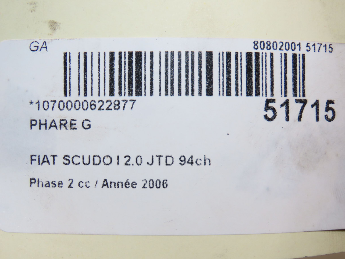 Phare droit occasion FIAT SCUDO I Phase 2 01-2004->04-2007 2.0 JTD 94ch