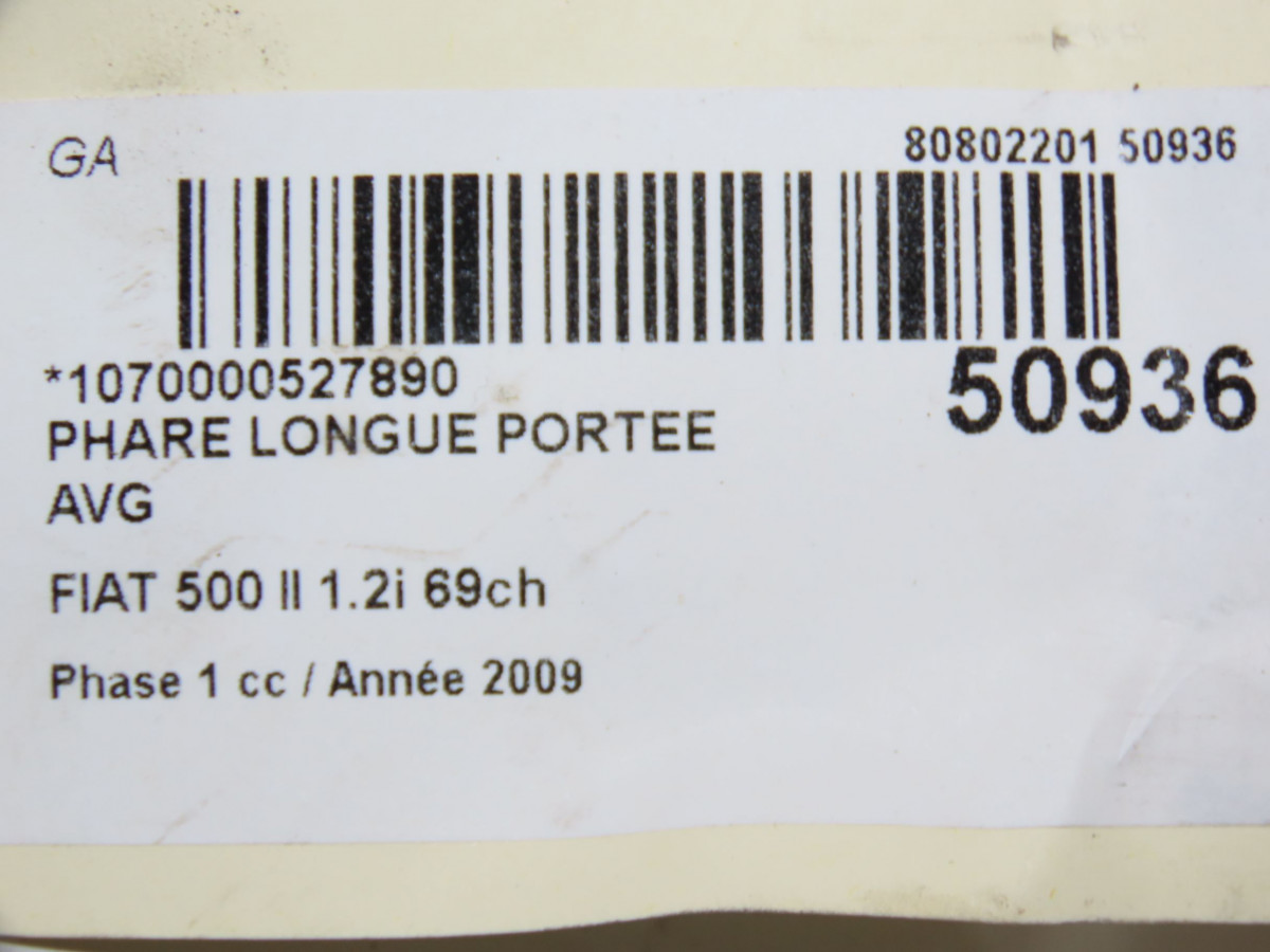 Phare longue portee avant gauche occasion FIAT 500 II500 II Phase 1 2007-07-01->2016-03-31 1.2i 69ch
