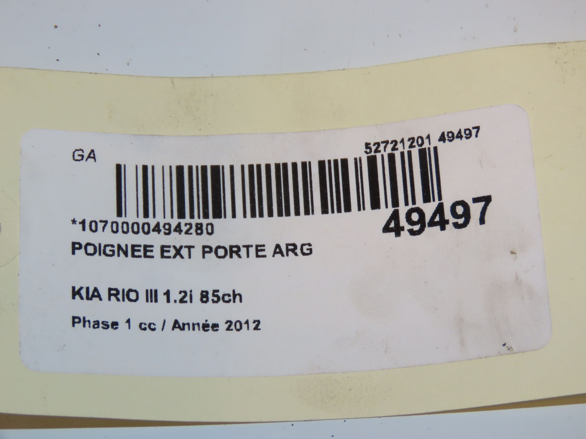 Poignee ext porte arg occasion KIA RIO IIIPhase 1 06-2011->... 1.2i 85ch