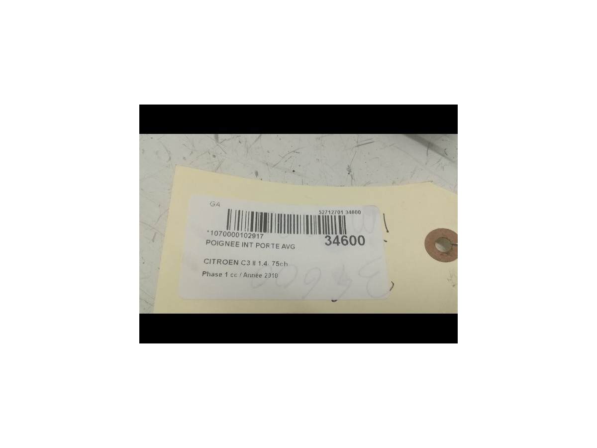 Poignee int porte avd occasion CITROEN C3 II Phase 1 11-2009->02-2013 1.4i 75ch 96834460VV