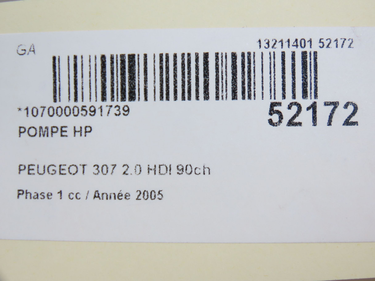 PEUGEOT 307 Phase 1 04-2001->06-2005 2.0 HDI 90ch