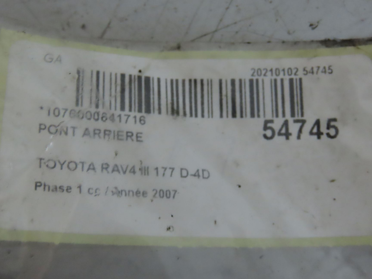 Pont arriere occasion TOYOTA RAV4 IIIPhase 1 02-2006->11-2009 177 D-4D