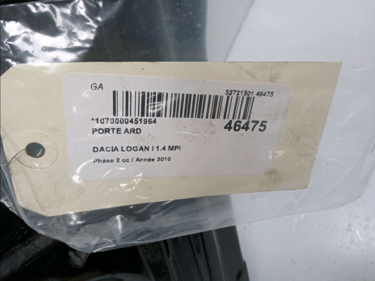 Porte avant gauche occasion DACIA LOGAN I Phase 2 07-2008->12-2012 1.4 MPI 801016598R
