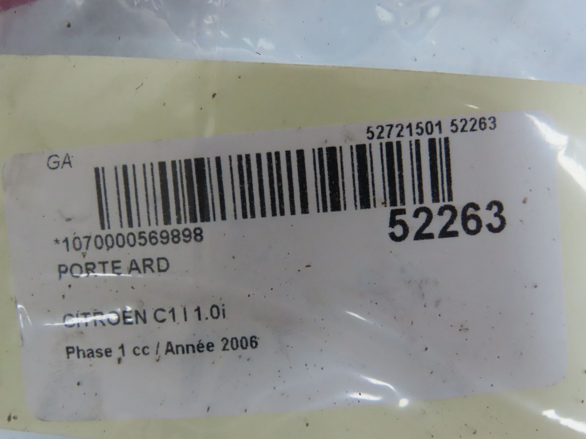 CODE COULEUR:KJH ÉLÉMENTS INCLUS: -BAGUETTE : OUI -VITRE: OUI -GARNITURE : NON -POIGNÉE: OUI -SERRURE : OUI ÉTAT: -RAYURES:OUI VOIR PHOTOS -IMPACT: NON - CITROEN C1 I Phase 1 06-2005->11-2008 1.0i