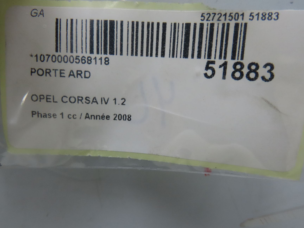 Porte avant droite occasion OPEL CORSA IV Phase 1 09-2006->12-2010 1.2 TWINPORT 80ch 93189329