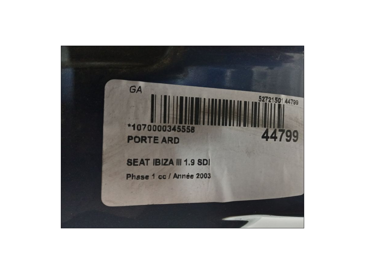 Porte avant droite occasion SEAT IBIZA III Phase 1 03-2002->03-2006 1.9 SDI 6L4831056S