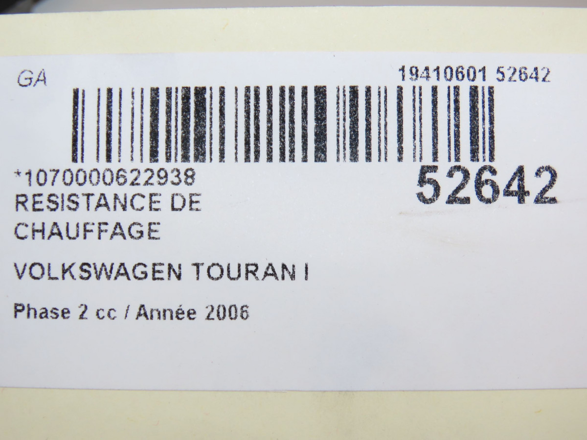 Ventilateur de chauffage occasion VOLKSWAGEN TOURAN I Phase 2 11-2006->09-2010 2.0TDi 16v 140ch