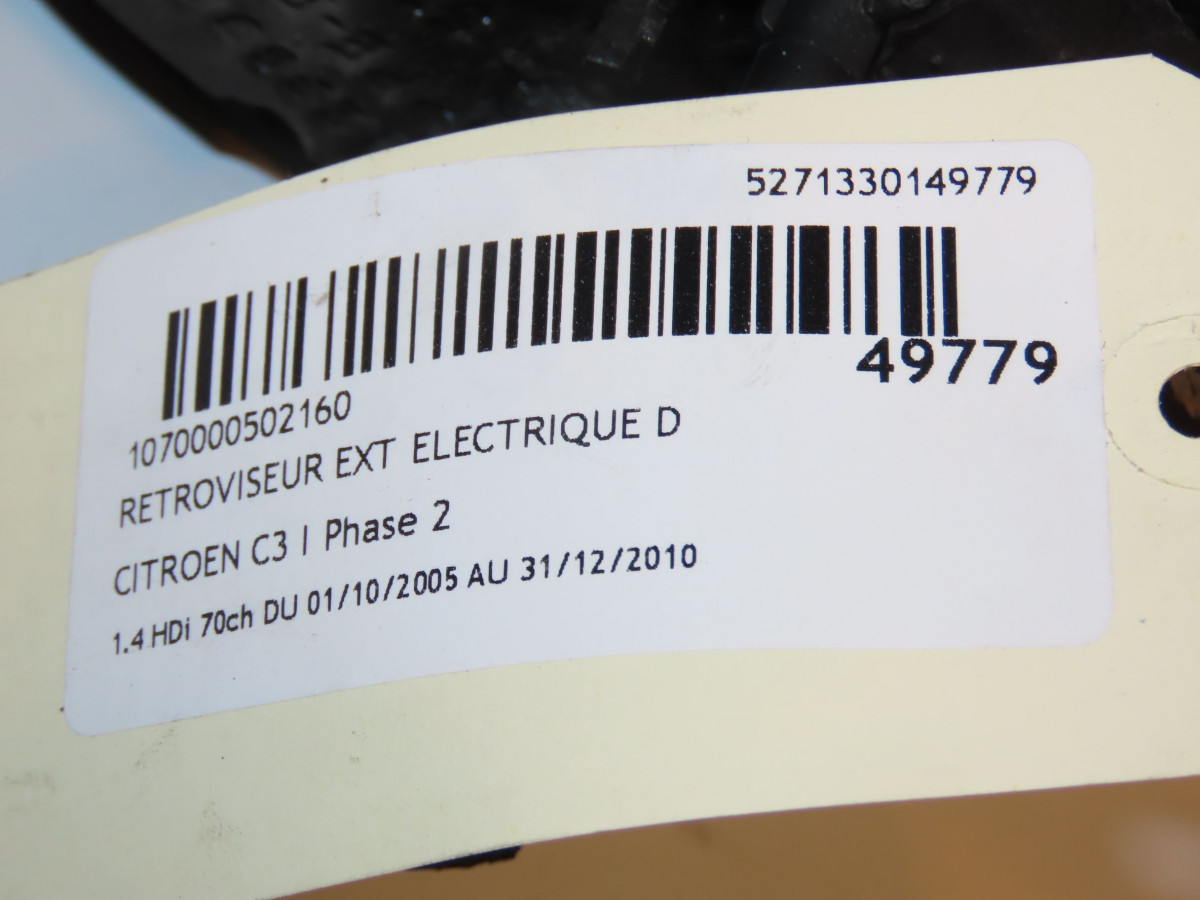 Retroviseur exterieur electrique droit occasion CITROEN C3 IPhase 2 10-2005->12-2010 1.4 HDi 70ch