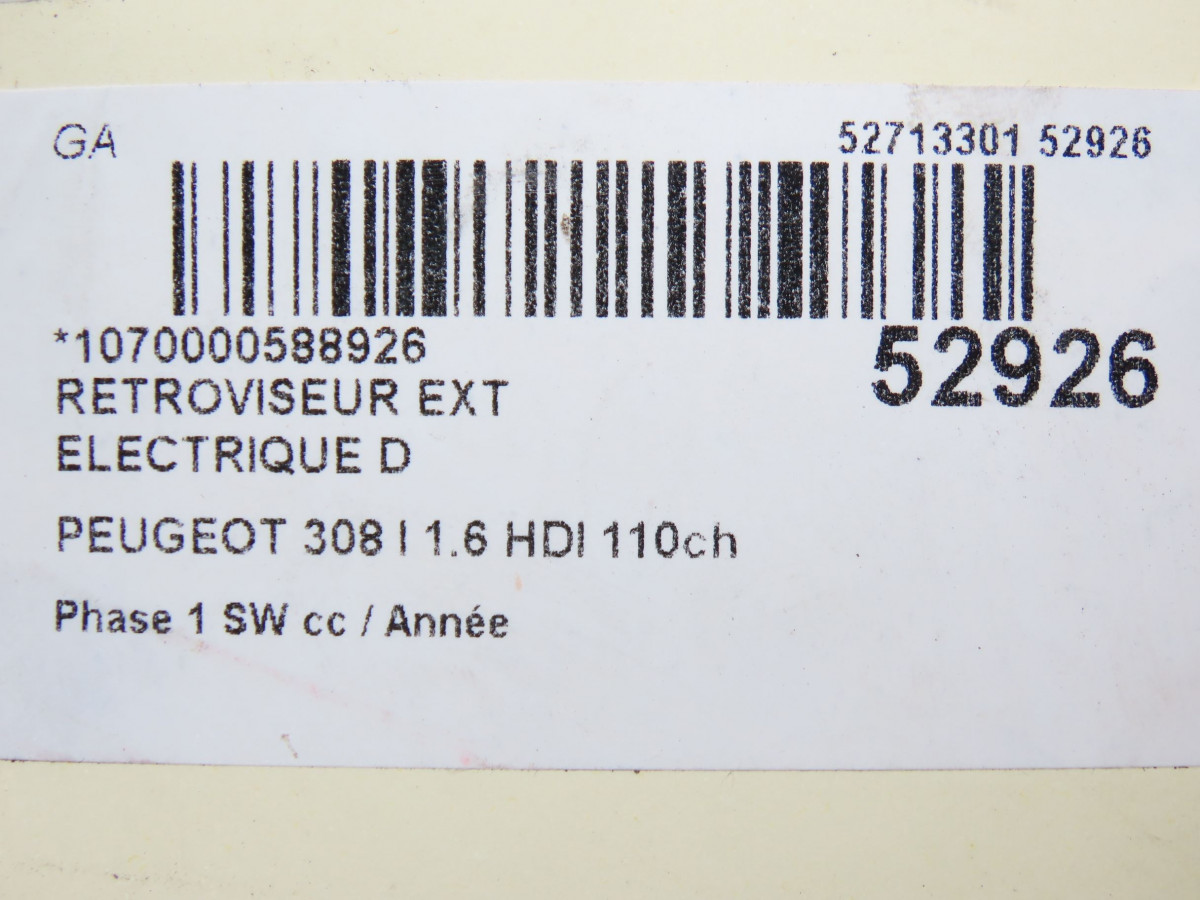 Retroviseur exterieur electrique droit occasion PEUGEOT 308 IPhase 1 SW 05-2008->03-2011 1.6 HDI 110ch