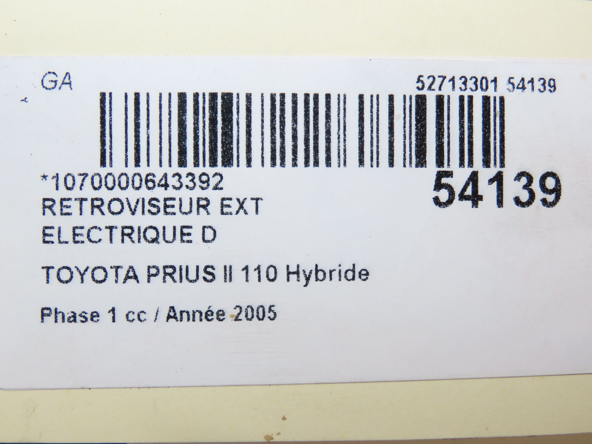 Aile avant droite occasion TOYOTA PRIUS II Phase 1 03-2004->11-2009 110 Hybride 5380147010