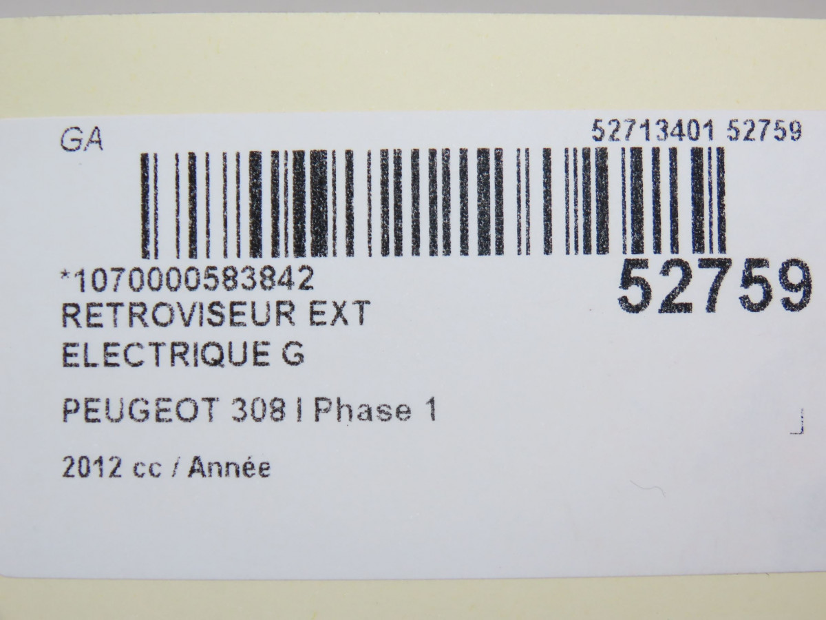 Retroviseur exterieur electrique droit occasion PEUGEOT 308 I Phase 1 09-2007->03-2011 8153NC