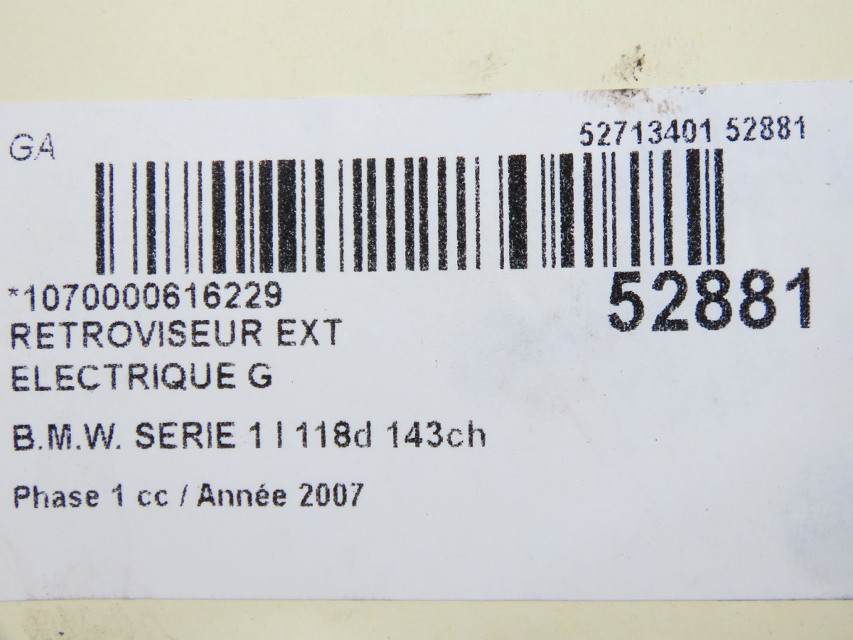 Retroviseur exterieur electrique gauche occasion B.M.W. SERIE 1 IPhase 1 01-2007->07-2011 118d 143ch