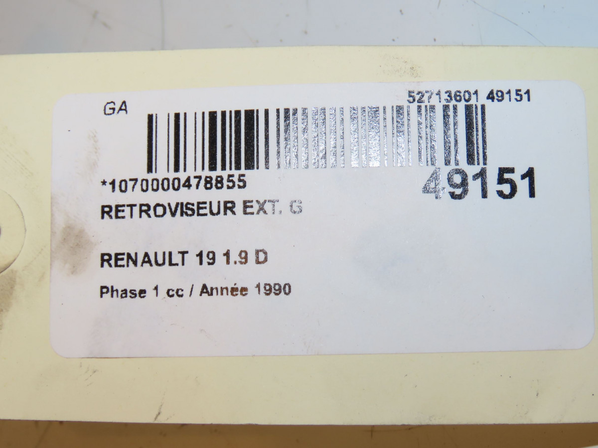 Retroviseur exterieur manuel droit occasion RENAULT 19 Phase 1 07-1989->04-1992 1.9 D 7701366327