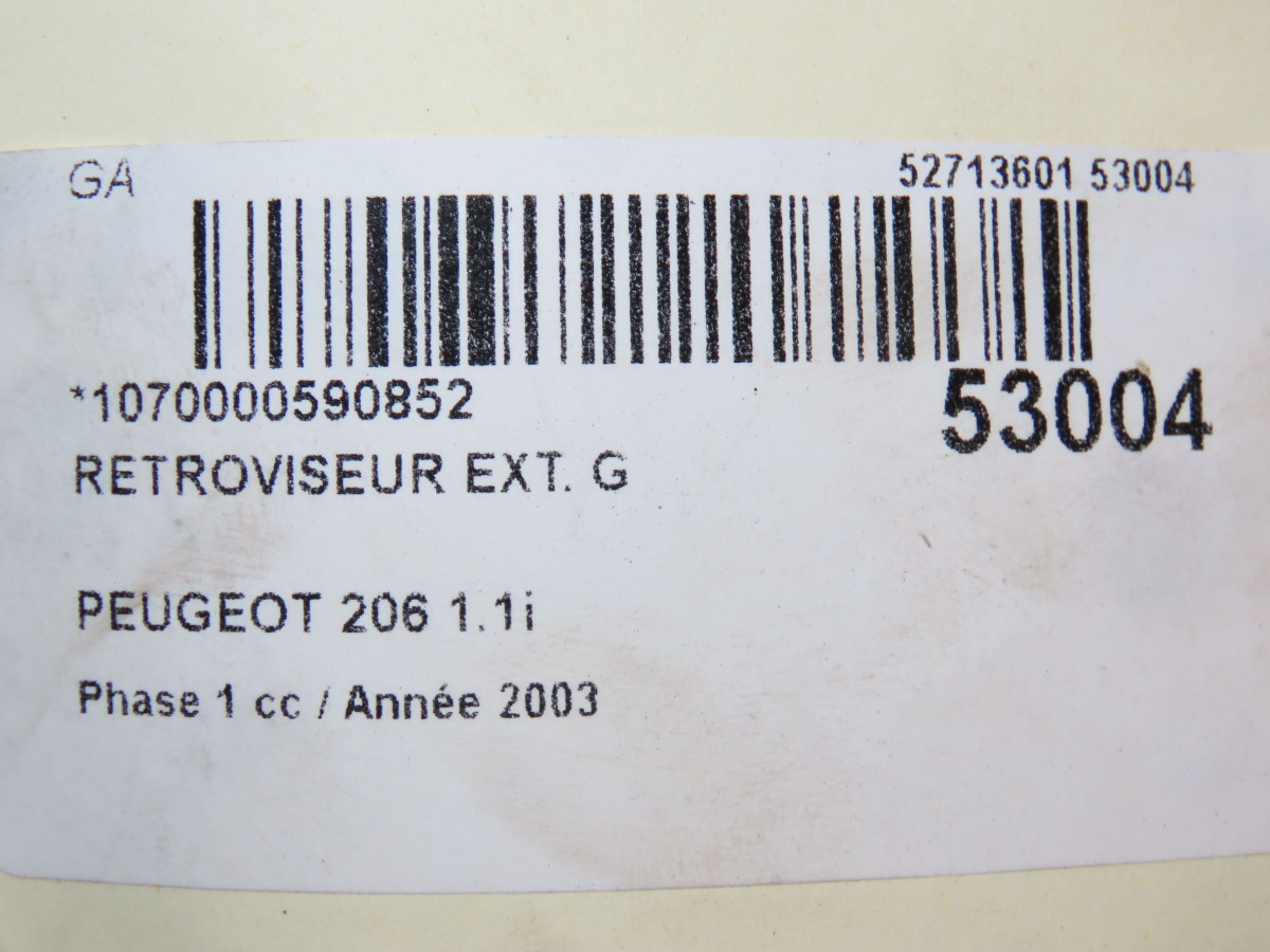 Retroviseur exterieur gauche occasion PEUGEOT 206Phase 1 09-1998->03-2009 1.1i