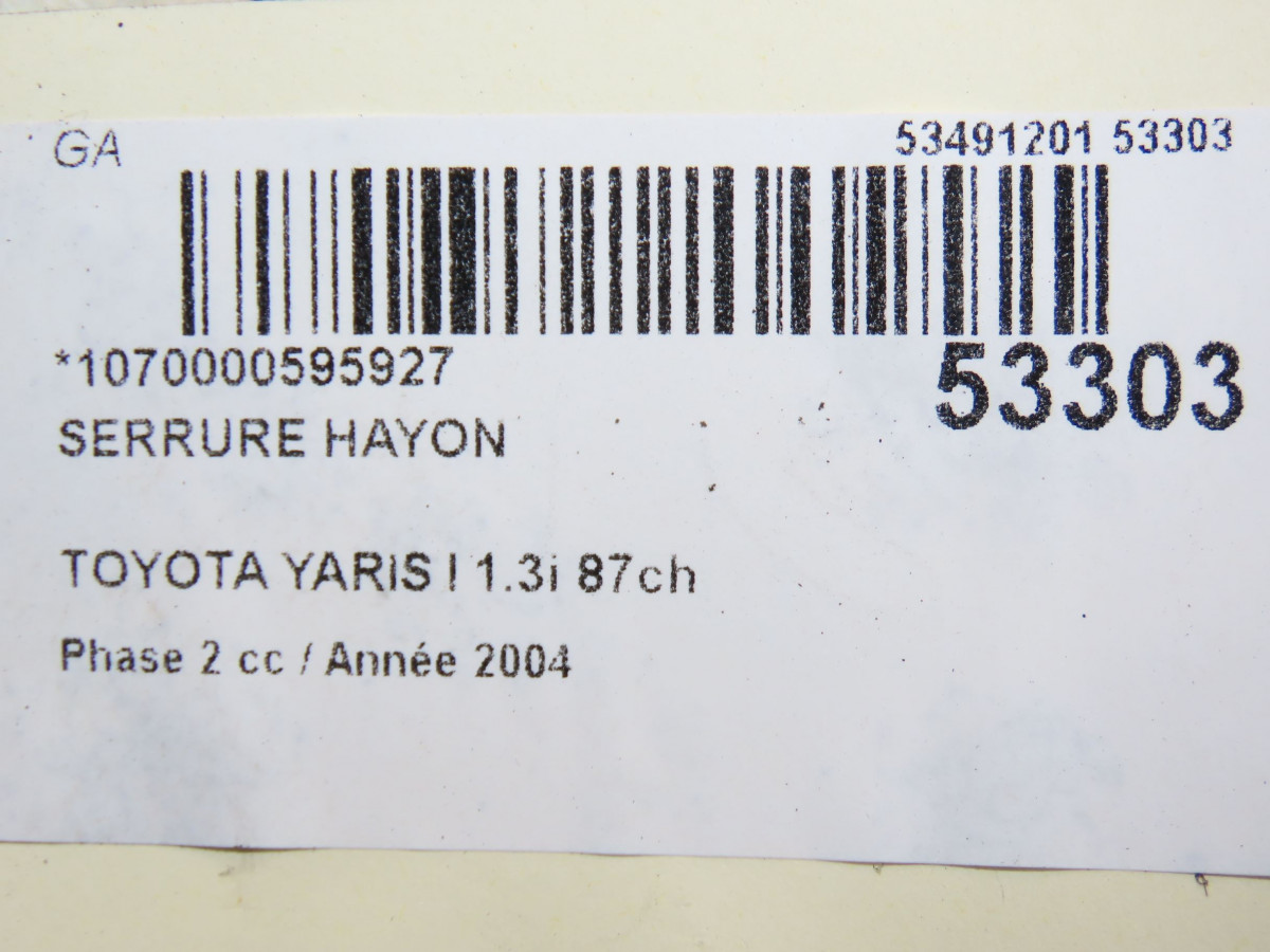 Hayon occasion TOYOTA YARIS I Phase 2 03-2003->12-2005 1.3i 87ch 670050D020