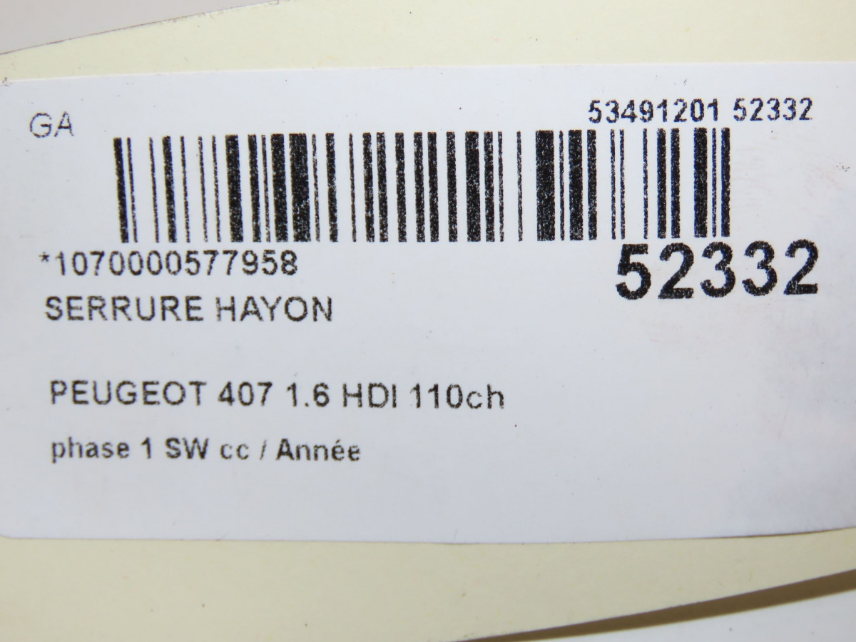Hayon occasion PEUGEOT 407 phase 1 SW 07-2004->07-2008 1.6 HDI 110ch 8701T5