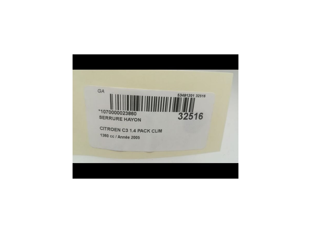 Serrure hayon occasion CITROEN C3 IPhase 1 04-2002->10-2005 1.4i