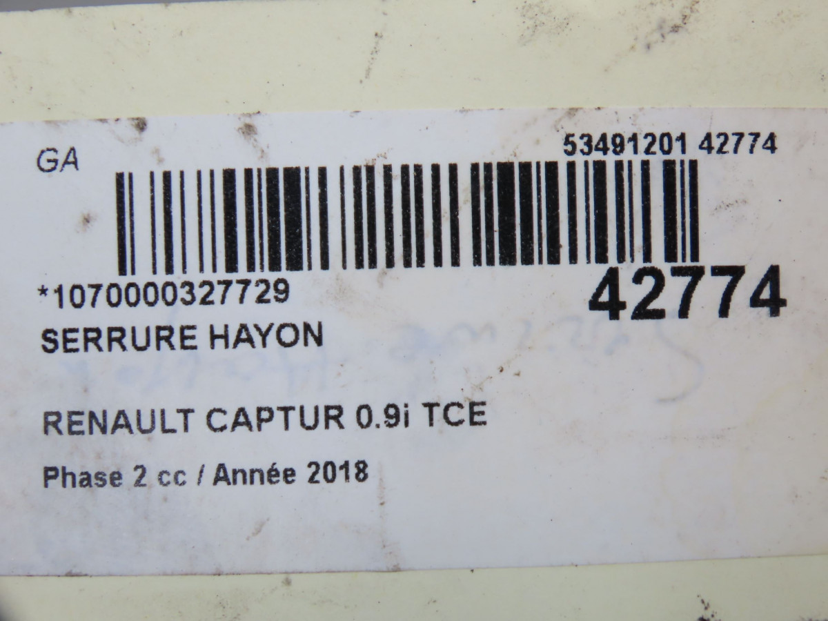 Actionneur serrure hayon occasion RENAULT CAPTUR Phase 1 04-1995->04-1999 0.9i TCE 90ch