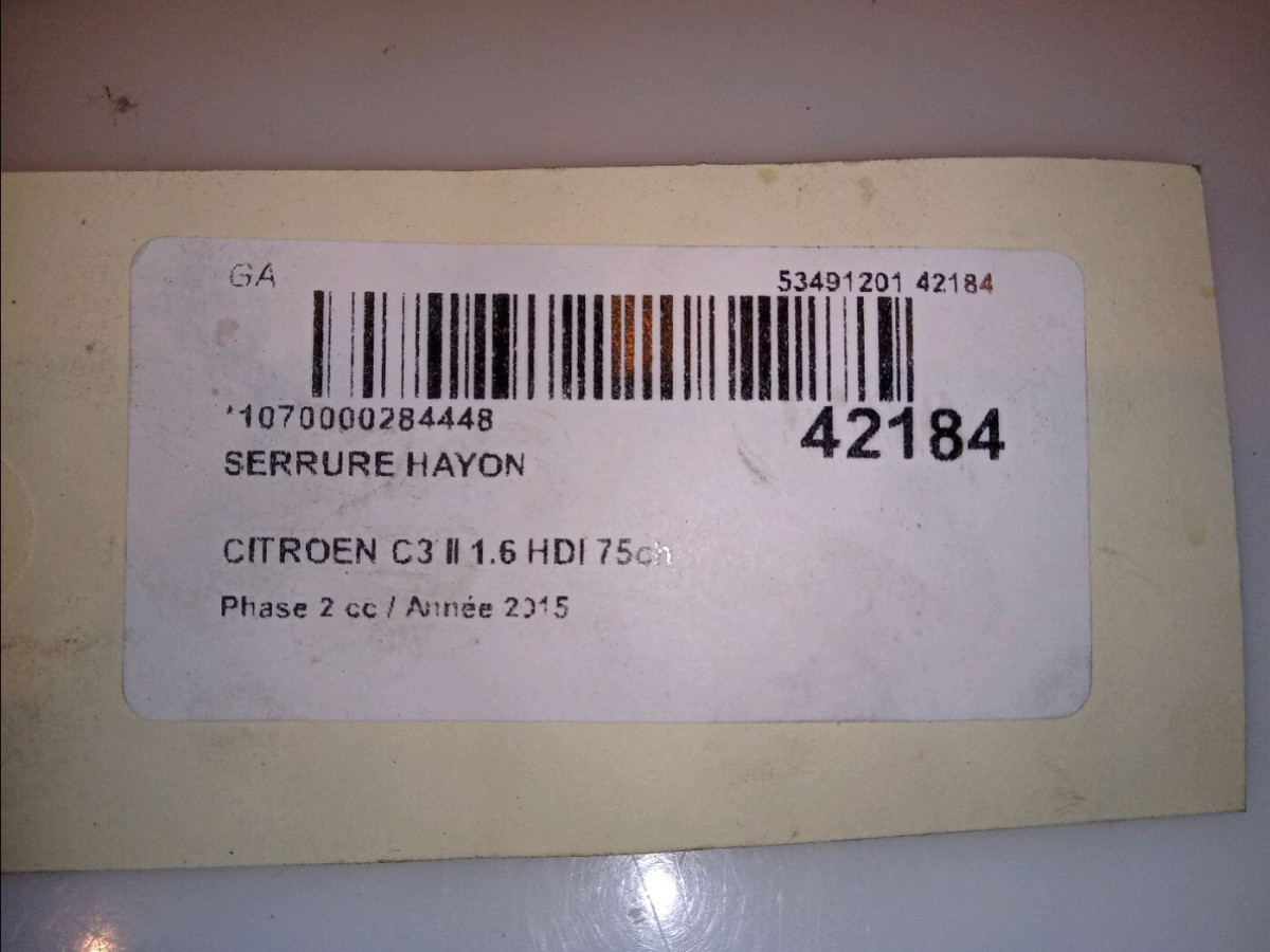 Actionneur serrure hayon occasion CITROEN C3 II Phase 2 03-2013->12-2016 1.6 HDI 75ch