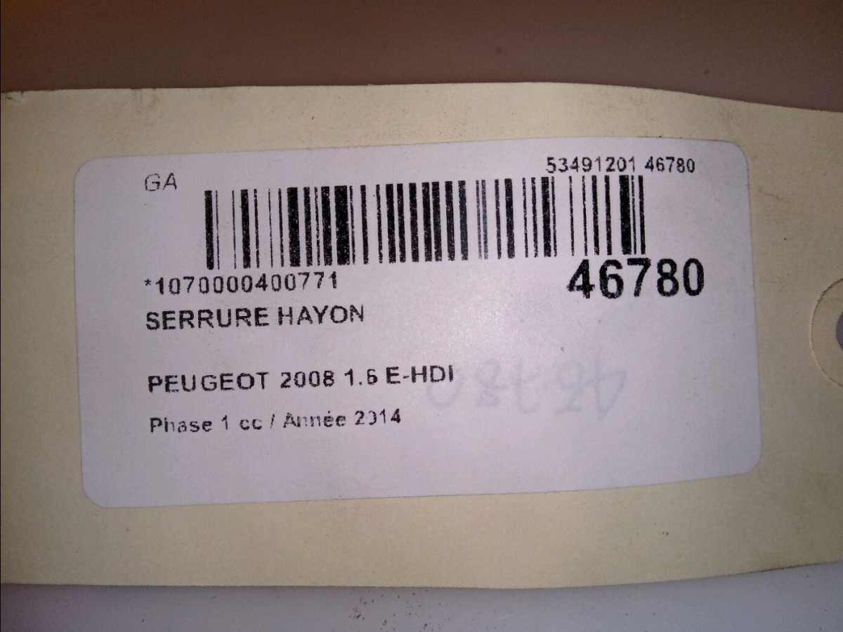 Serrure porte arg occasion PEUGEOT 2008 Phase 1 01-2013->... 1.6 E-HDI 92ch 9812501480