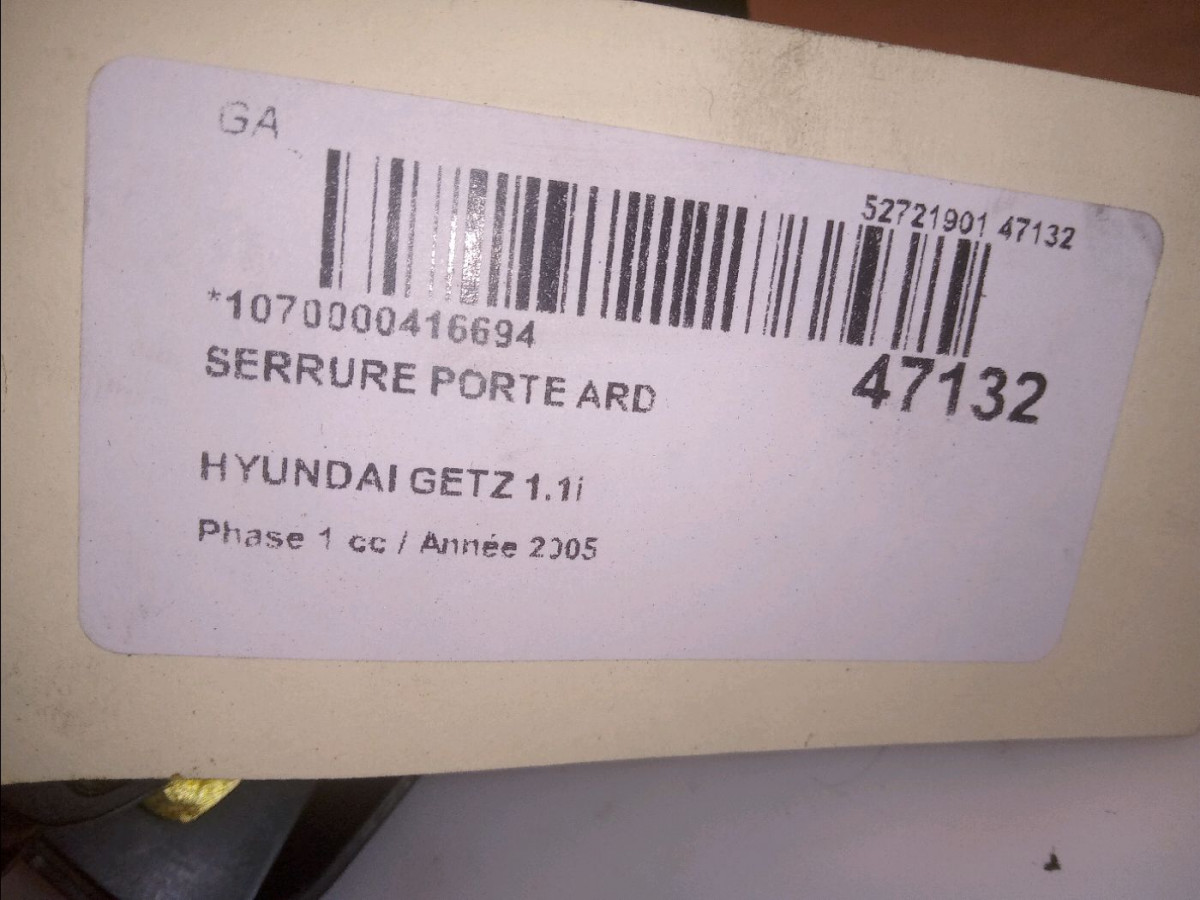 Serrure porte arg occasion HYUNDAI GETZ Phase 1 09-2002->11-2005 1.1i 814101C020