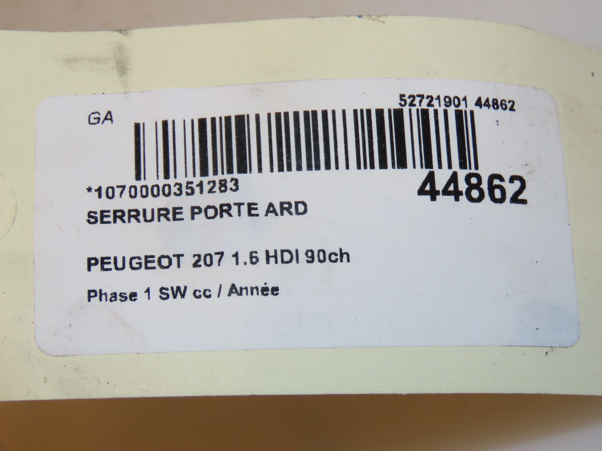 Porte arrière droite occasion PEUGEOT 207 Phase 1 SW 07-2007->03-2013 1.6 HDI 90ch 9008V5