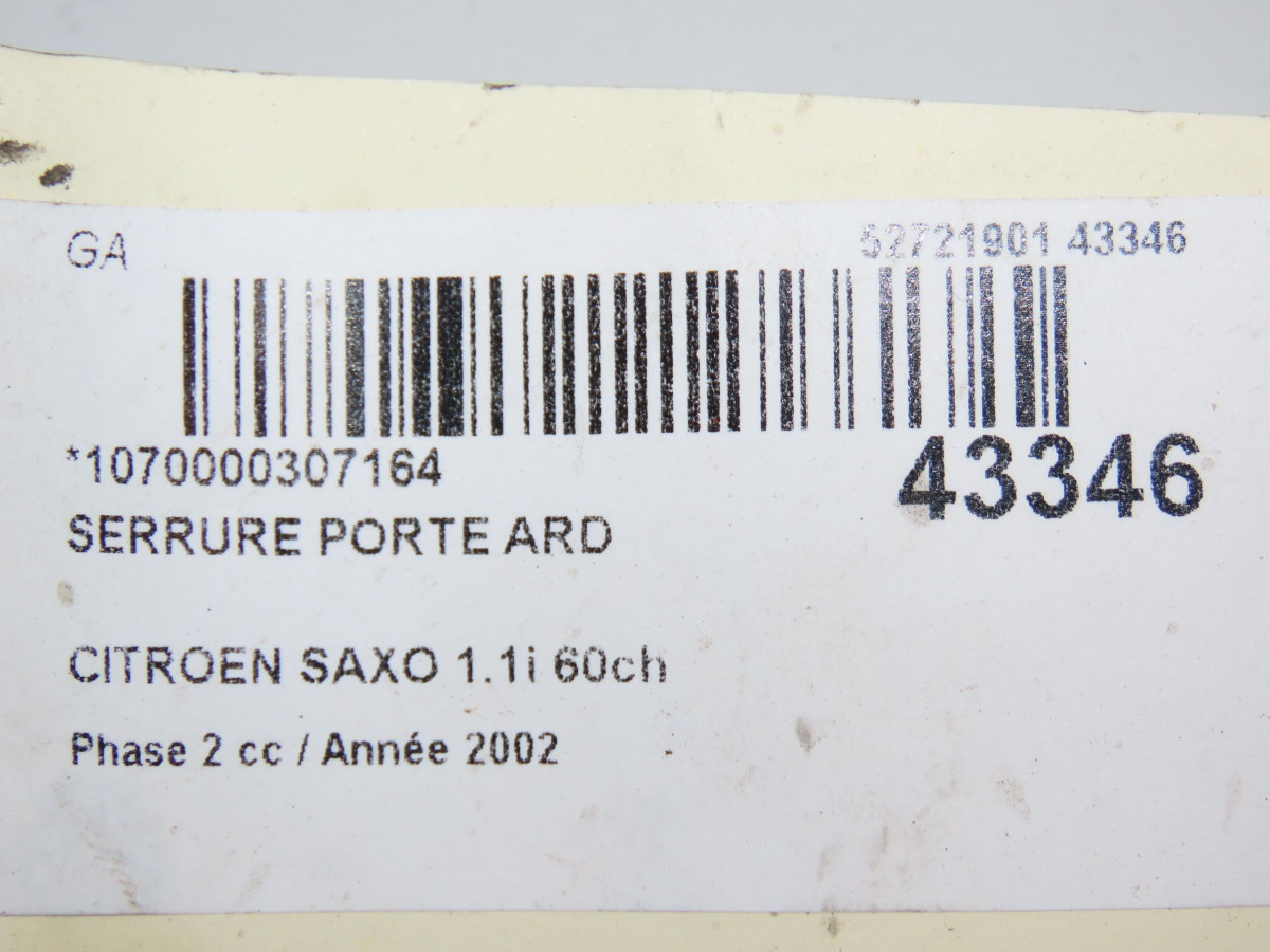 Serrure porte ard occasion CITROEN SAXOPhase 2 09-1999->12-2004 1.1i 60ch